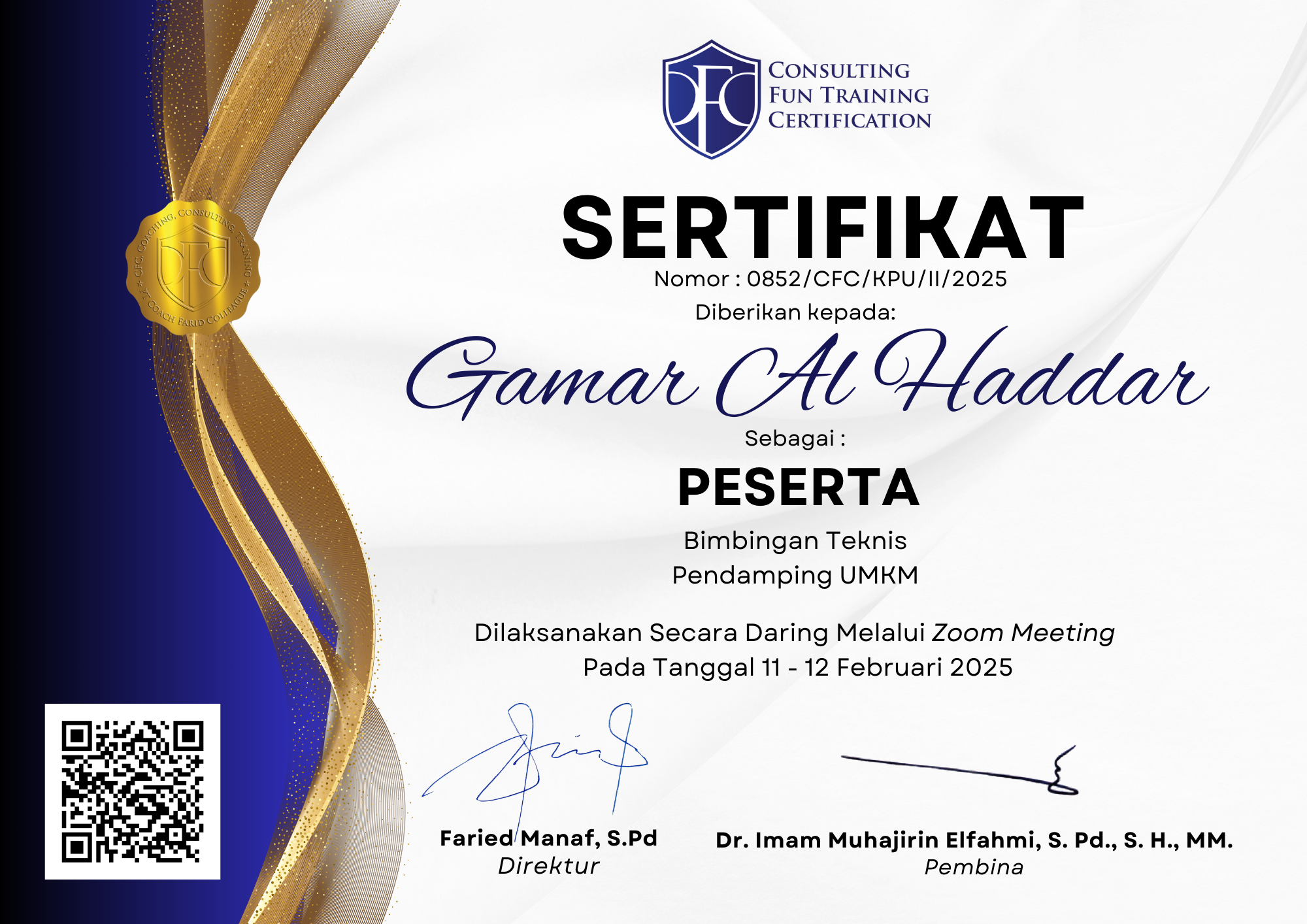 Sertifikat a.n. Gamar Al Haddar